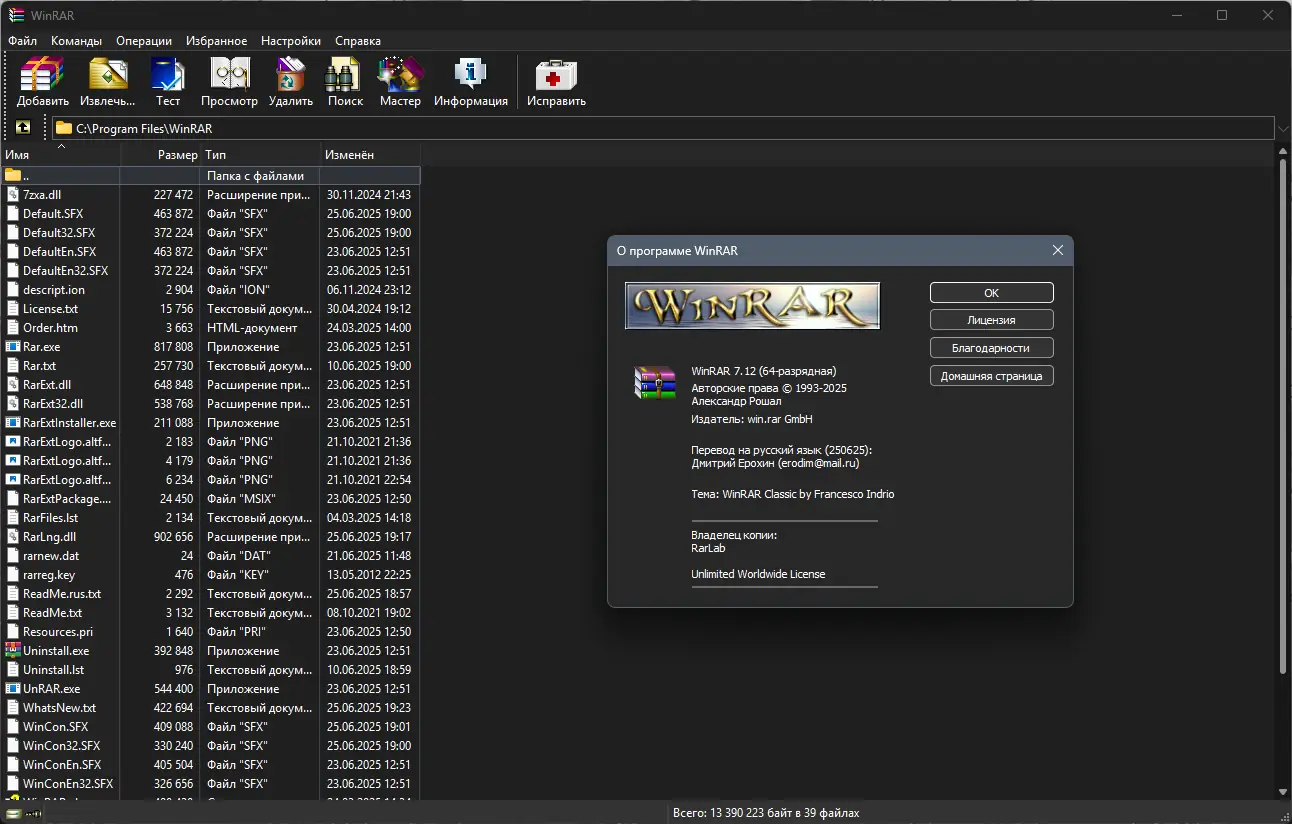 WinRAR — популярная программа для работы с архивами, обеспечивающая высокую степень сжатия и поддержку множества форматов. Она позволяет создавать, распаковывать и управлять архивами RAR, ZIP, 7Z, TAR, GZ и других, включая шифрование, восстановление повреждённых файлов и работу с многотомными архивами. Инструмент подходит как для повседневного использования, так и для профессиональных задач в среде Windows.