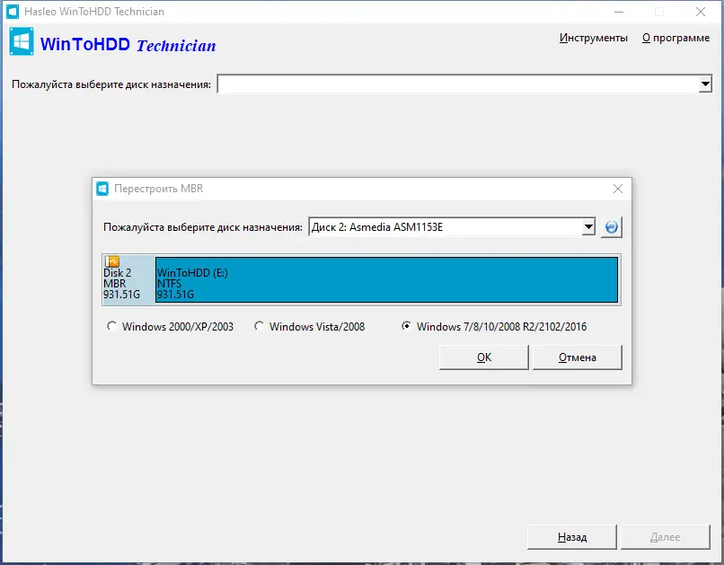 Работа с WinToHDD
