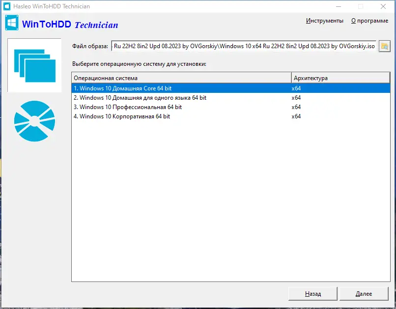 WinToHDD — это инструмент для установки, переустановки и клонирования операционных систем Windows без применения внешних носителей. Программа работает напрямую с ISO-образами и позволяет развернуть систему на любом доступном диске, подключённом к компьютеру. Процесс не требует создания загрузочных флешек или дисков, что делает его особенно удобным в повседневном использовании.