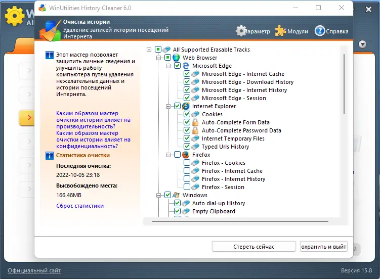 - Регулярные обновления, улучшающие совместимость с новыми версиями Windows, включая 10 и 11, а также добавляющие новые плагины для очистки истории.
