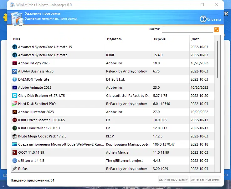 Работа с WinUtilities