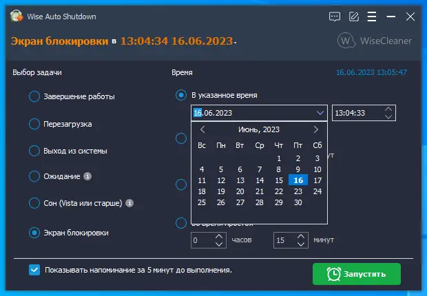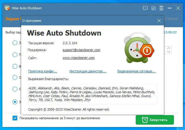 Работа с Wise Auto Shutdown