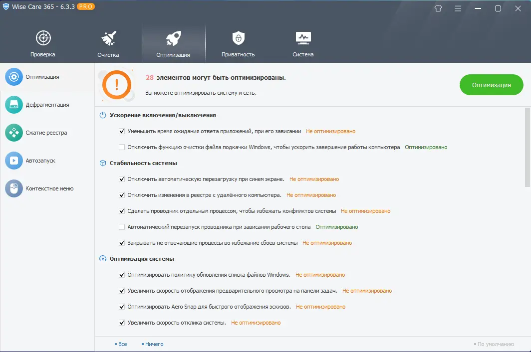 Wise Care 365 представляет собой многофункциональный пакет, разработанный для повседневного обслуживания компьютера. Он включает модули по очистке реестра, дефрагментации дисков, управлению автозагрузкой и защите личных данных. Программа работает стабильно, не перегружает систему и предлагает как ручную, так и автоматическую настройку. Её интерфейс интуитивно понятен, а функционал охватывает основные аспекты системной оптимизации.