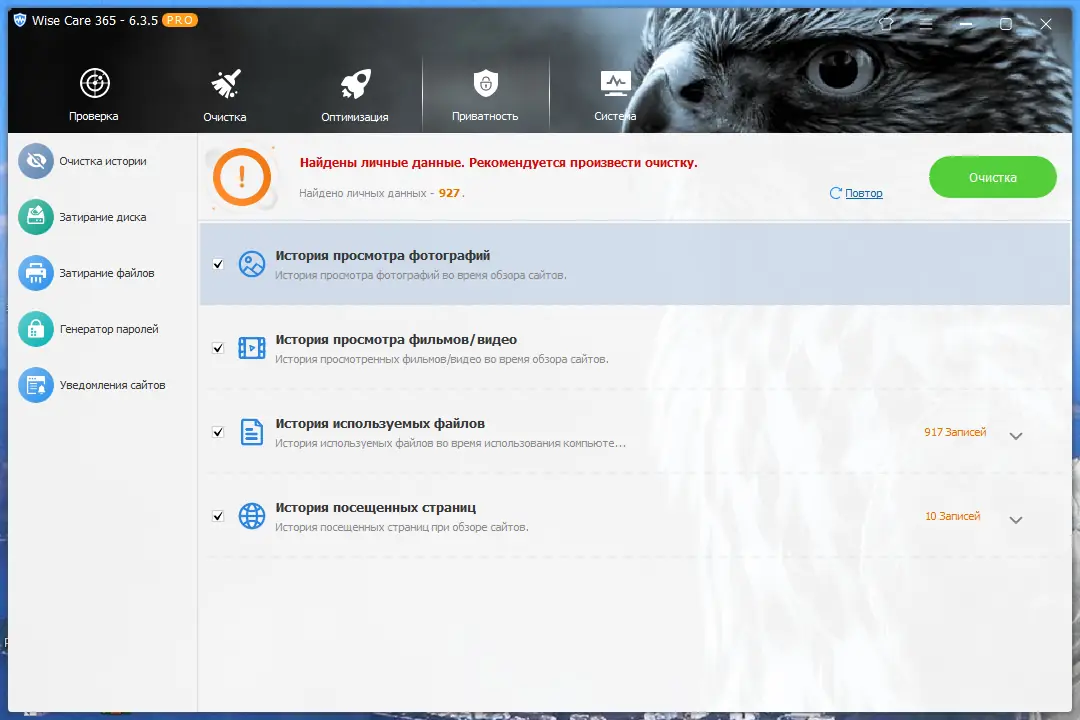 Работа с Wise Care 365