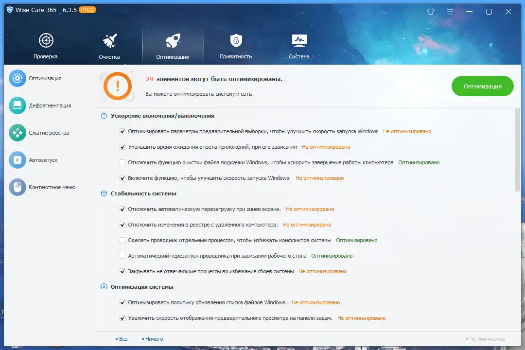 Wise Care 365 представляет собой многофункциональный инструмент для комплексного ухода за компьютером, разработанный для улучшения производительности и надежности системы. Программа сочетает в себе технологии очистки реестра, дефрагментации жесткого диска, управления автозагрузкой и защиты персональных данных, позволяя пользователю поддерживать ПК в идеальном состоянии без глубоких технических знаний. Она подходит как для домашнего, так и для офисного использования, обеспечивая стабильную работу даже на старых конфигурациях.