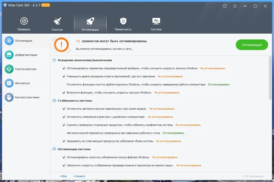 Wise Care 365 — это многофункциональный инструмент, предназначенный для комплексной оптимизации операционной системы Windows. Он включает в себя модули для анализа и исправления ошибок реестра, удаления временных файлов, дефрагментации дисков и управления автозагрузкой. Программа способна повысить отзывчивость системы, освободить дисковое пространство и улучшить общую стабильность работы компьютера.