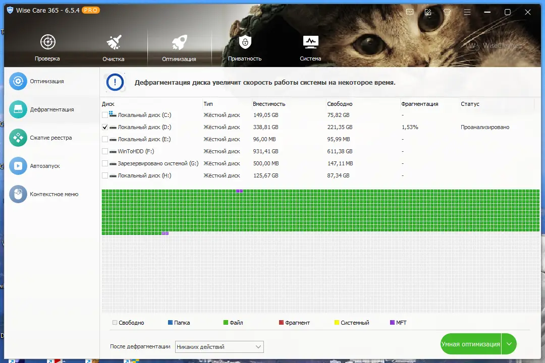 Интеграция всех необходимых инструментов в одном интерфейсе делает Wise Care 365 удобным решением для комплексного ухода за системой.
