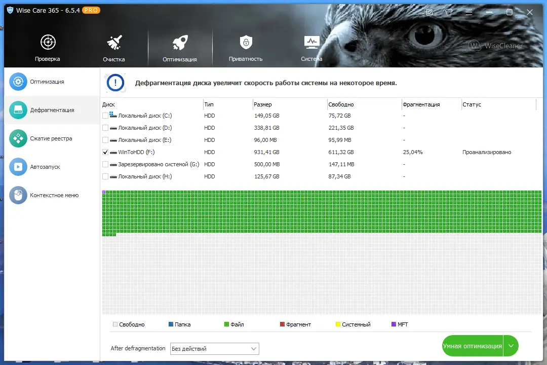 - Дефрагментация жёсткого диска и оптимизация файловой структуры для улучшения доступа к данным.