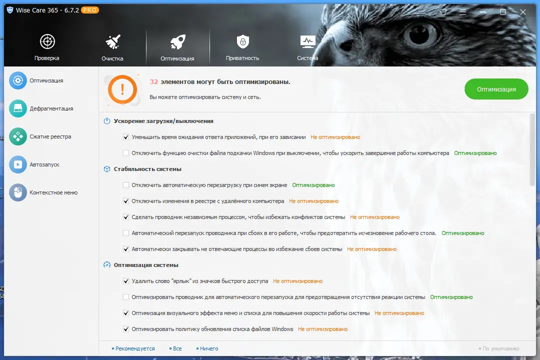 - Оптимизация и дефрагментация системного реестра для устранения ошибок и замедлений.