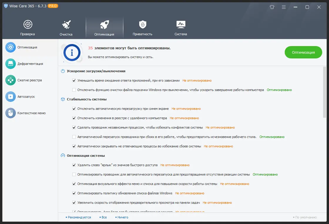 Wise Care 365 представляет собой мощный инструмент для комплексной оптимизации операционной системы. Он включает в себя модули для анализа и исправления ошибок в реестре, удаления временных файлов, дефрагментации жесткого диска и управления запускаемыми при загрузке программами. Программа способствует повышению общей производительности, снижению времени отклика системы и увеличению доступного пространства на накопителе. Регулярное использование утилиты помогает предотвратить сбои и замедление работы компьютера.
