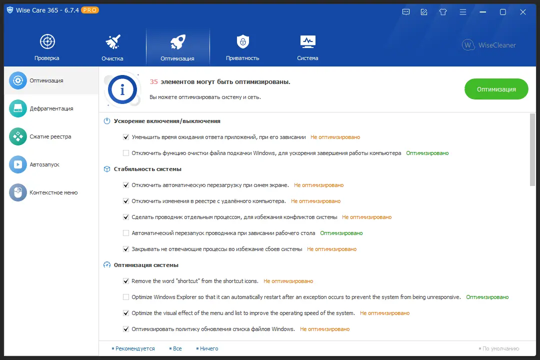 Wise Care 365 — комплексная утилита для оптимизации и обслуживания компьютера под управлением Windows. Программа объединяет функции очистки системы, дефрагментации дисков и реестра, управления автозагрузкой, восстановления файлов и защиты конфиденциальных данных. Благодаря интуитивному интерфейсу и широкому набору инструментов, она подходит как для новичков, так и для опытных пользователей, стремящихся поддерживать систему в идеальном состоянии.