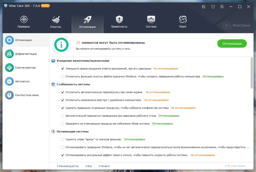 Wise Care 365 — это комплексная утилита для оптимизации и обслуживания операционной системы Windows, объединяющая в себе функции очистки реестра, дефрагментации диска, управления автозагрузкой, шифрования файлов и ускорения работы компьютера. Программа подходит как для начинающих пользователей, так и для продвинутых, обеспечивая простой интерфейс и расширенные настройки. Она эффективно освобождает дисковое пространство, повышает производительность системы и защищает личные данные, позволяя поддерживать ПК в идеальном состоянии без лишних усилий.