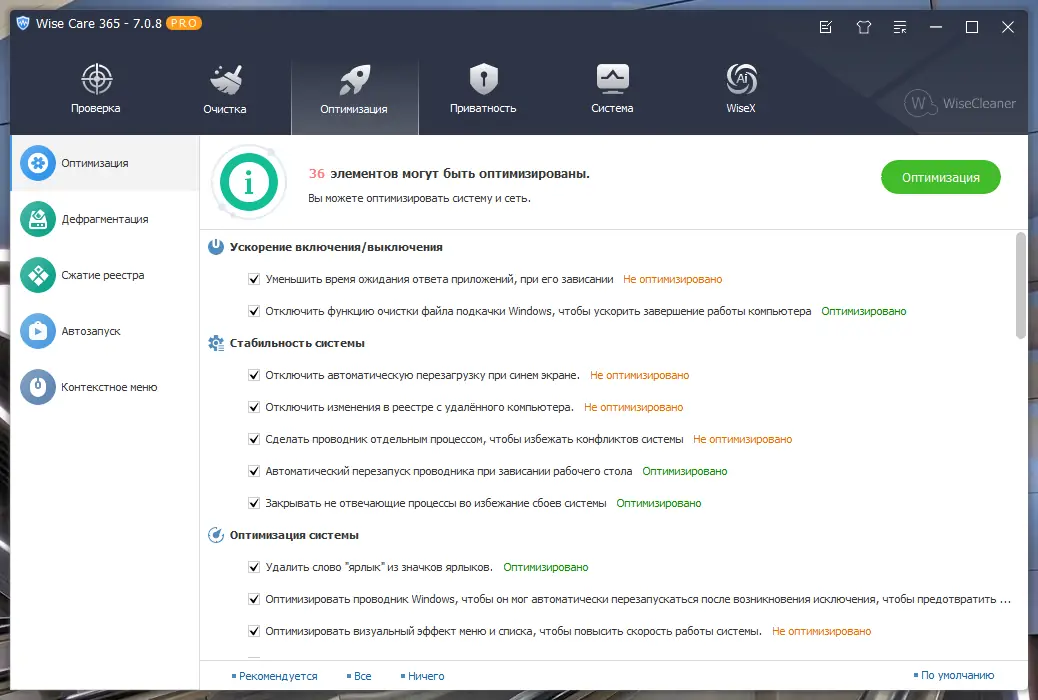 Wise Care 365 — многофункциональная утилита для глубокой оптимизации и обслуживания операционной системы Windows. Программа объединяет инструменты очистки реестра, дефрагментации дисков, управления автозагрузкой и защиты личных данных. Она помогает ускорить работу компьютера, освободить дисковое пространство и повысить общую стабильность системы. Пользователи получают доступ к широкому набору настроек, включая режим однонажатийной оптимизации и автоматическое выполнение задач по расписанию. Продукт поддерживает как базовые, так и расширенные функции, что делает его подходящим как для новичков, так и для опытных пользователей.