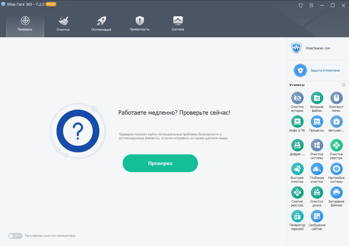 Wise Care 365 — комплексная утилита для оптимизации и обслуживания операционной системы Windows. Программа объединяет функции очистки реестра, дефрагментации дисков, управления автозагрузкой и защиты конфиденциальных данных. Подходит как начинающим пользователям, так и продвинутым, обеспечивая стабильность, высокую скорость работы и безопасность системы.