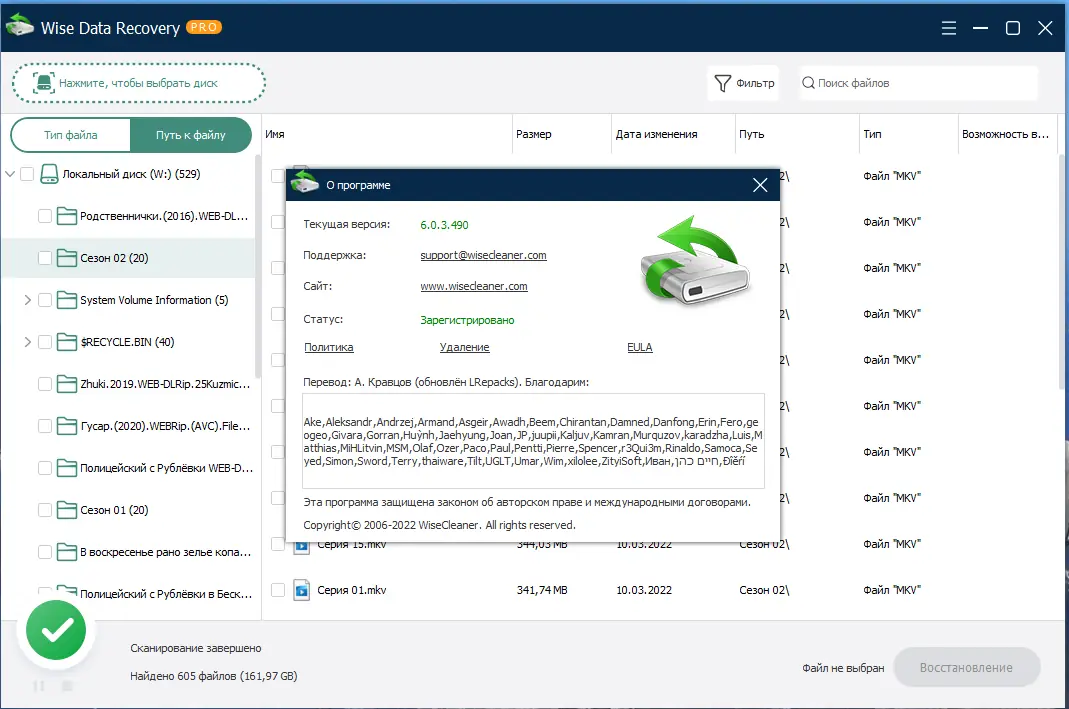 Wise Data Recovery — эффективная утилита для восстановления удалённых файлов с жёстких дисков, флешек и других носителей. Программа поддерживает широкий спектр типов данных и файловых систем, обеспечивая высокую точность поиска и безопасное восстановление. Интерфейс интуитивно понятен, а встроенный предварительный просмотр позволяет оценить состояние файлов до их извлечения.
