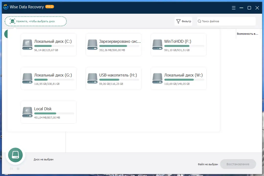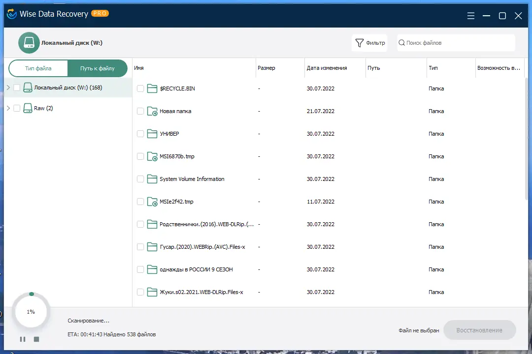 Работа с Wise Data Recovery