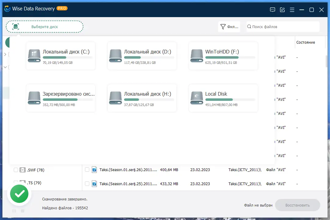 Wise Data Recovery — эффективная утилита для восстановления удалённых файлов, включая документы, изображения, видео, аудио и архивы. Программа работает с локальными и съёмными носителями, поддерживает предварительный просмотр и анализ состояния файлов.