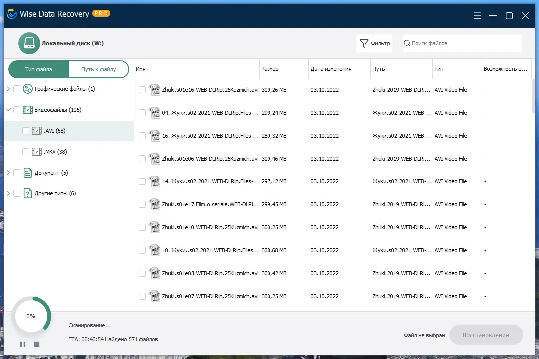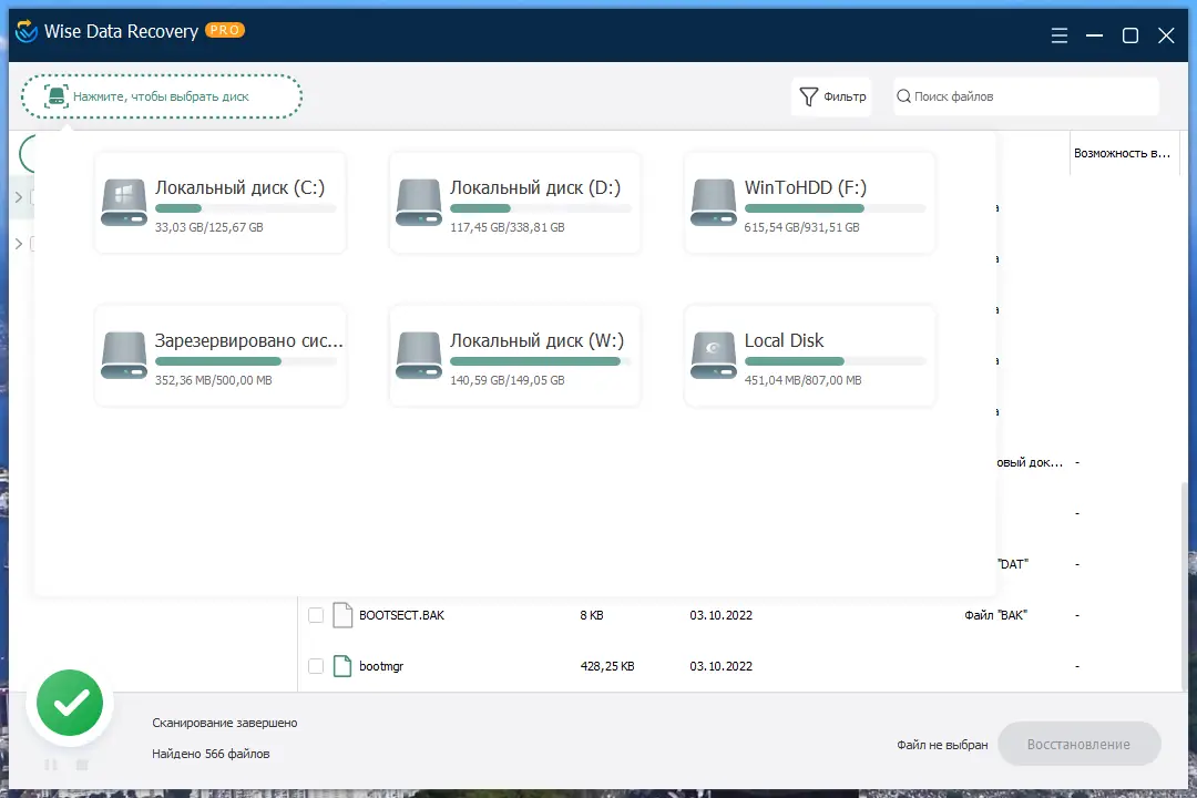 Работа с Wise Data Recovery