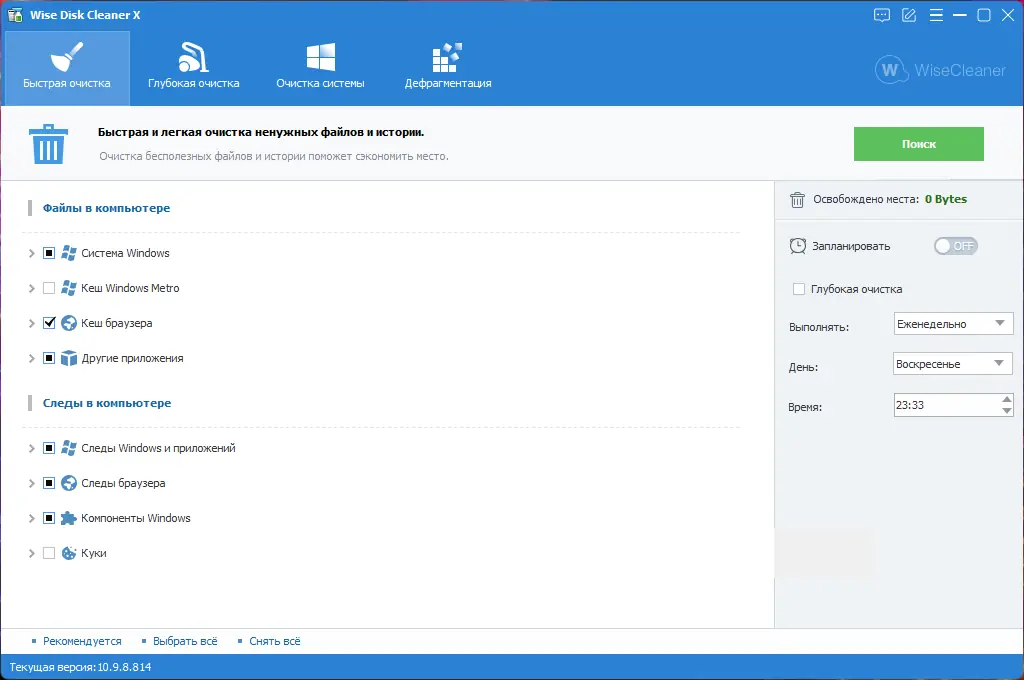Wise Disk Cleaner — это легковесная и эффективная утилита для очистки дисков от временных, кэшированных и ненужных файлов, способная ускорить работу системы и освободить значительное количество места на жёстком диске. Программа поддерживает анализ более чем 50 типов мусорных данных, включая остатки удалённых приложений, журналы событий, файлы обновлений Windows и временные файлы браузеров. Интерфейс интуитивно понятен, а процесс очистки можно настроить под индивидуальные потребности пользователя.