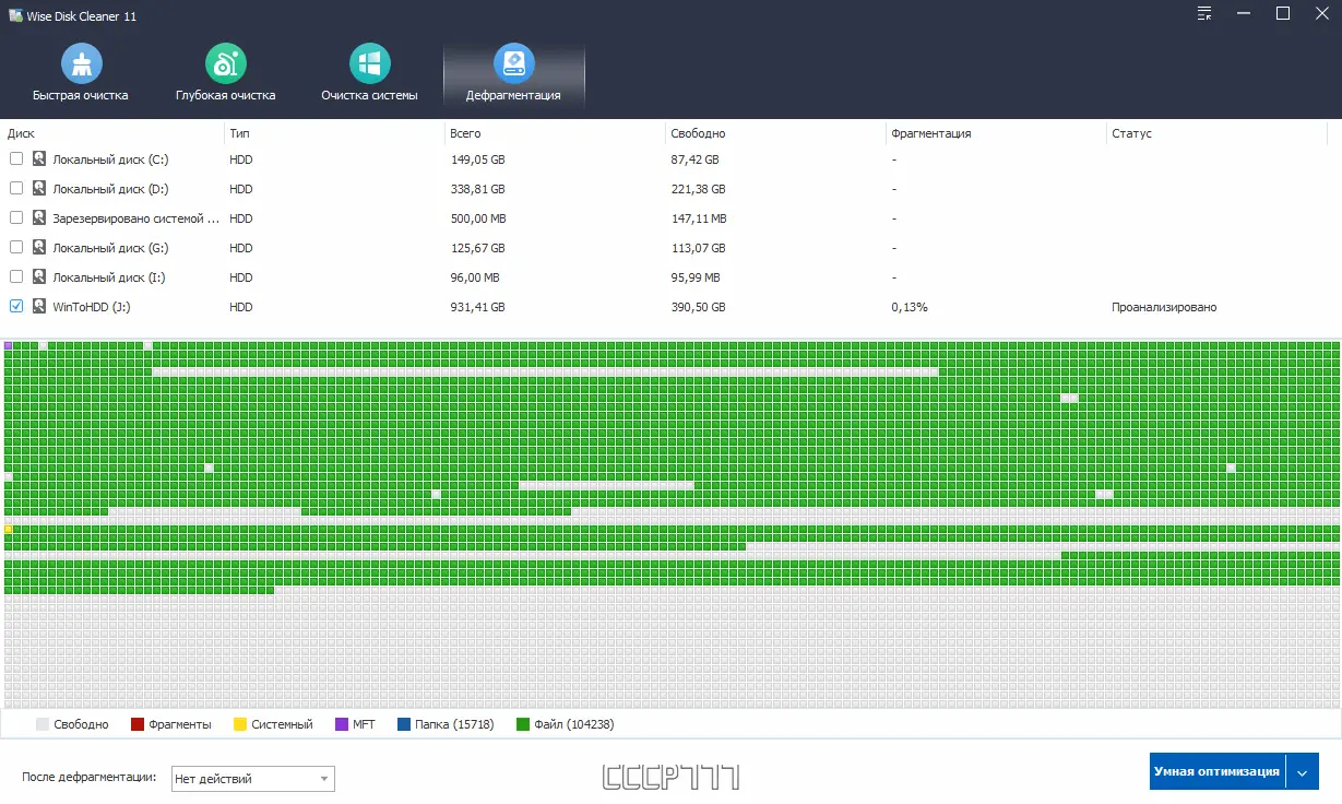 Работа с Wise Disk Cleaner