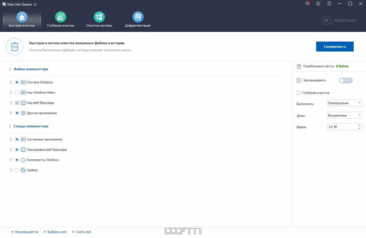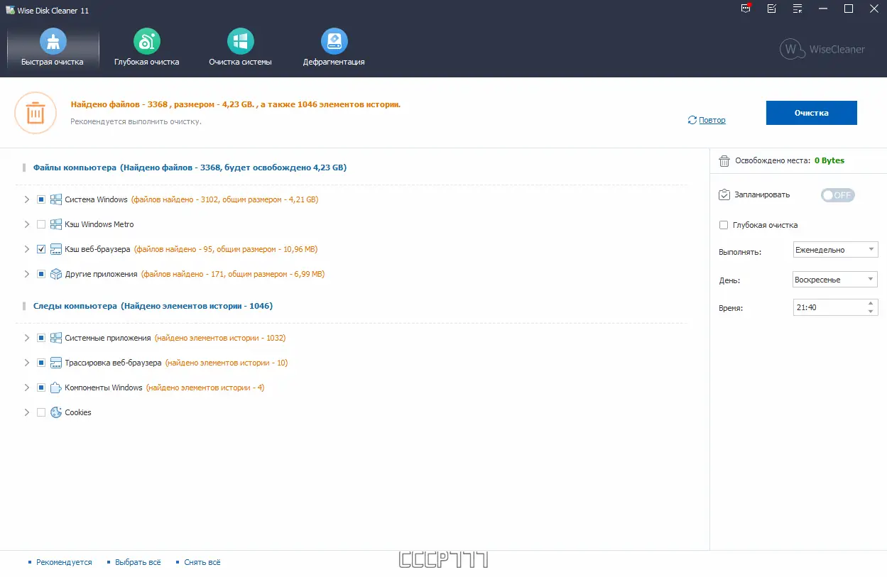 - Включает в себя пошагового помощника, упрощающего настройку и запуск очистки для новичков.