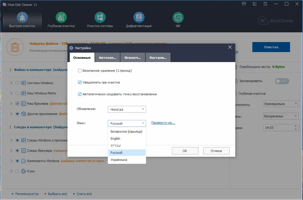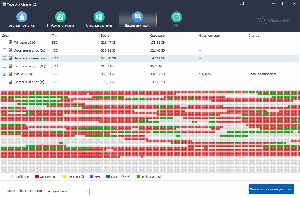 Работа с Wise Disk Cleaner
