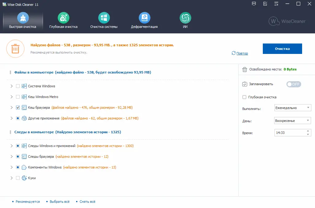 Wise Disk Cleaner демонстрирует высокую эффективность в удалении ненужных файлов и поддержании чистоты системы. Её интерфейс интуитивно понятен, а алгоритмы сканирования оптимизированы под быструю работу без перегрузки ресурсов. Программа не замедляет работу компьютера во время выполнения задач и не требует постоянного присутствия в фоне. При этом она предоставляет достаточный уровень контроля, позволяя детально настраивать параметры очистки и экспортировать данные для анализа. Несмотря на широкие возможности, утилита остаётся компактной и не перегружена избыточными функциями.