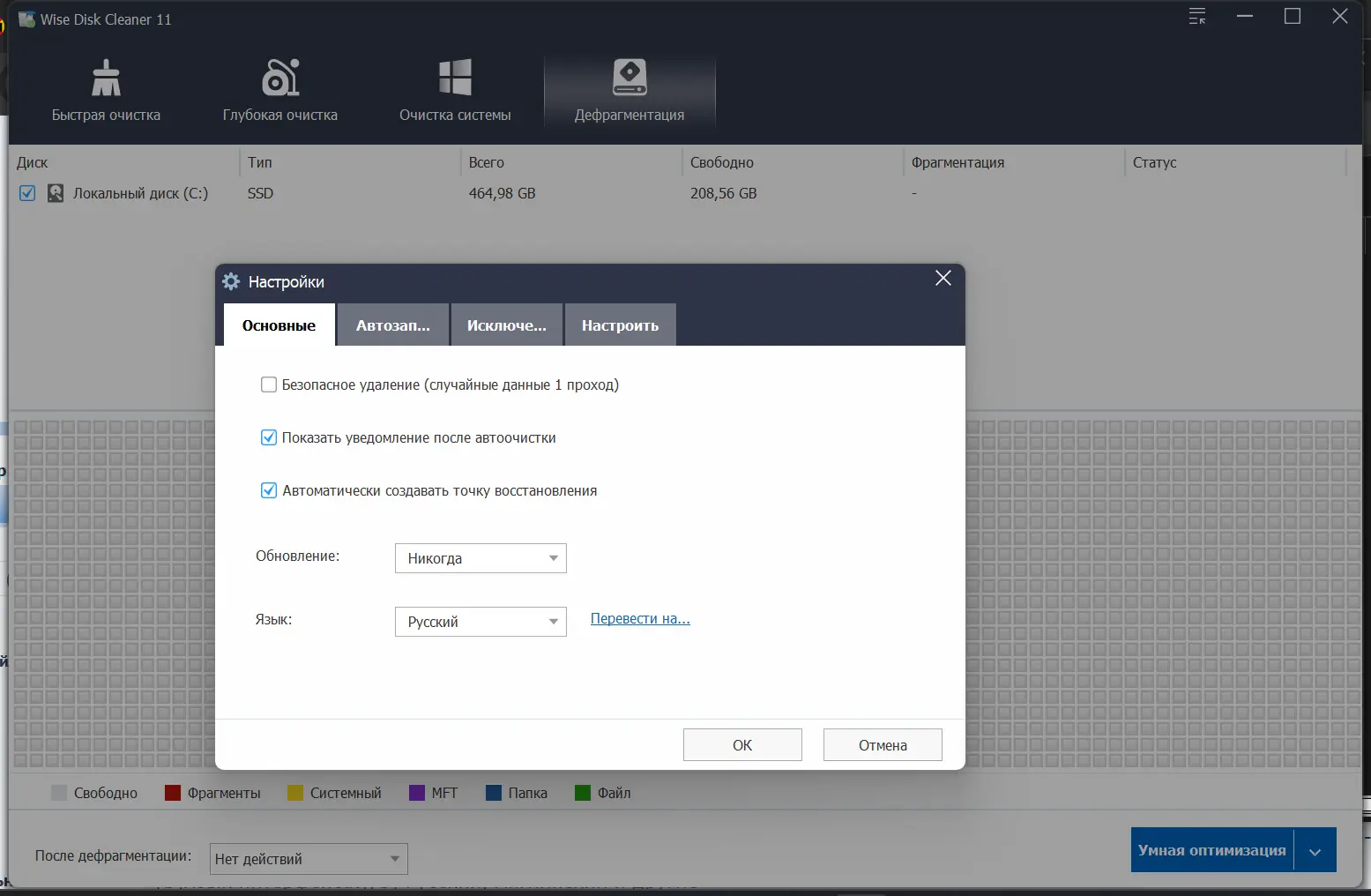 Работа с Wise Disk Cleaner