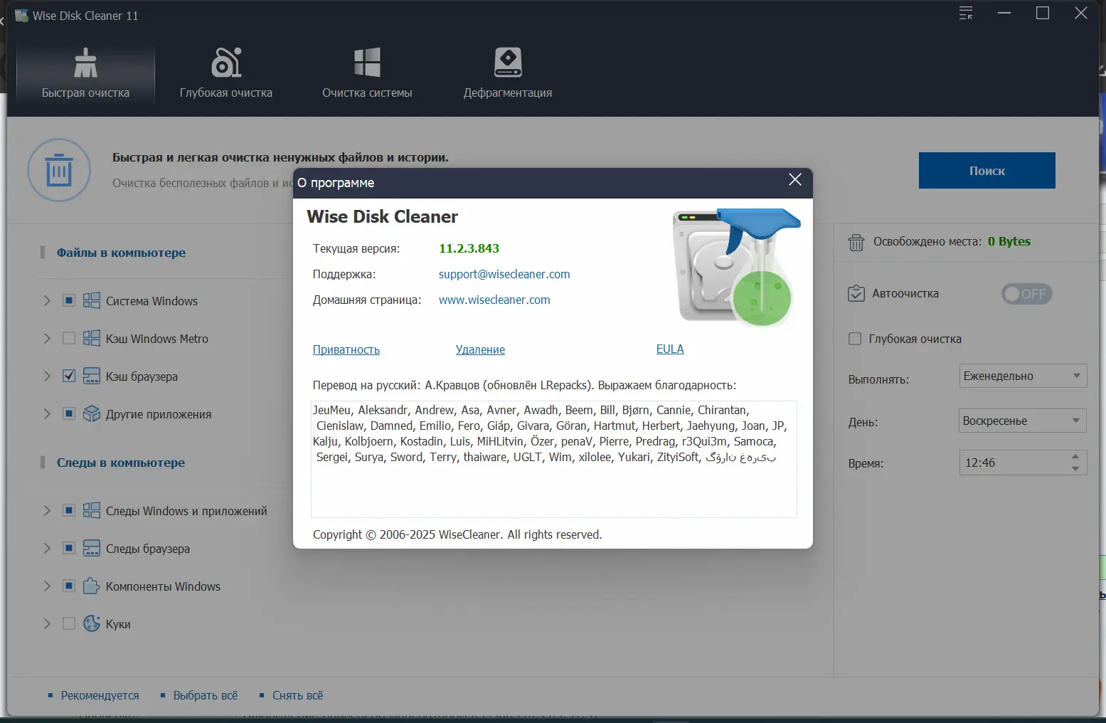 Программа предназначена для оптимизации дискового пространства и повышения производительности компьютера за счёт систематической очистки. Она эффективно находит и удаляет временные файлы, остатки деинсталлированных приложений, кэш браузеров, логи и другие накопившиеся данные, которые со временем замедляют работу системы. Интерфейс прост и интуитивно понятен, что делает утилиту подходящей как для новичков, так и для опытных пользователей.