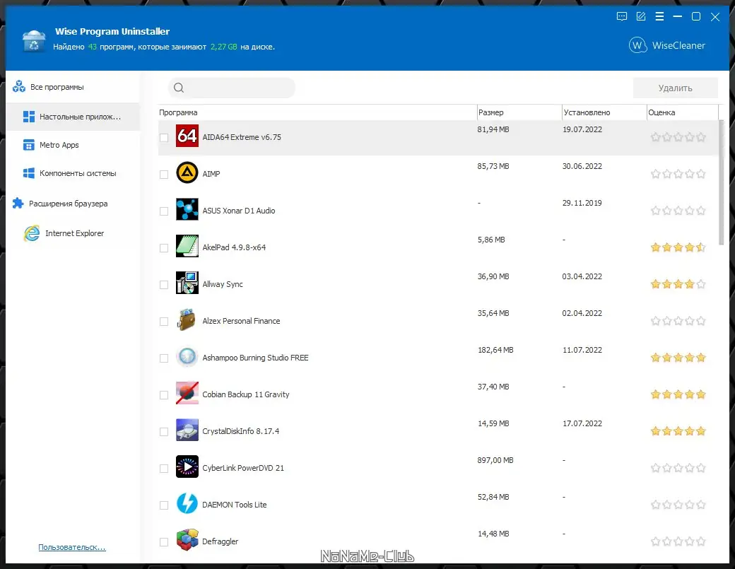 Работа с Wise Program Uninstaller