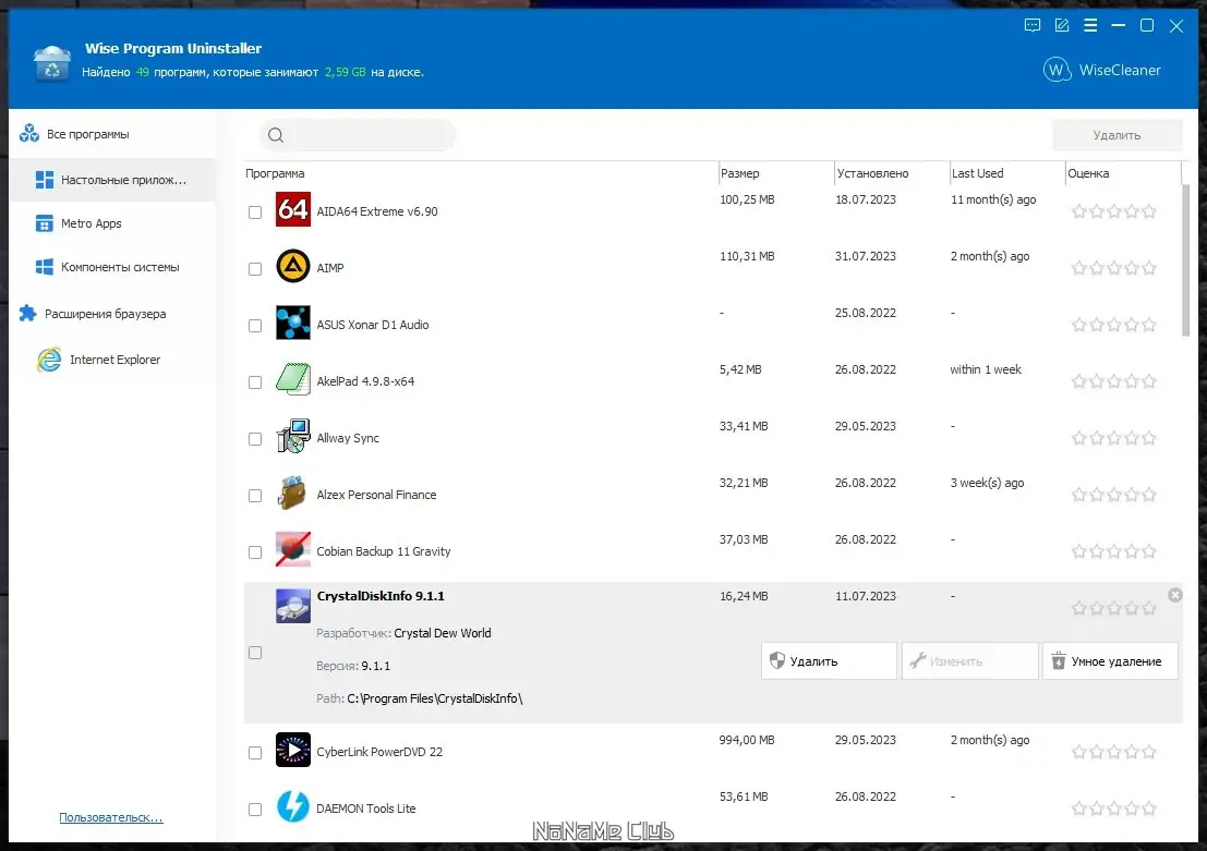 Работа с Wise Program Uninstaller