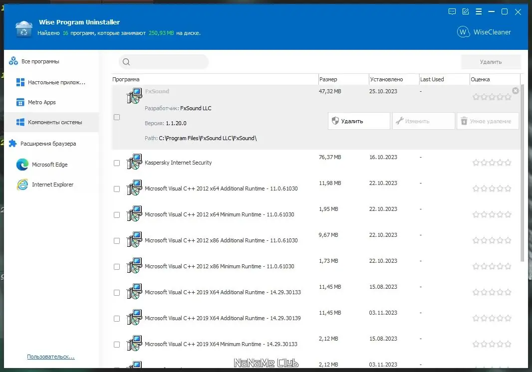 Работа с Wise Program Uninstaller