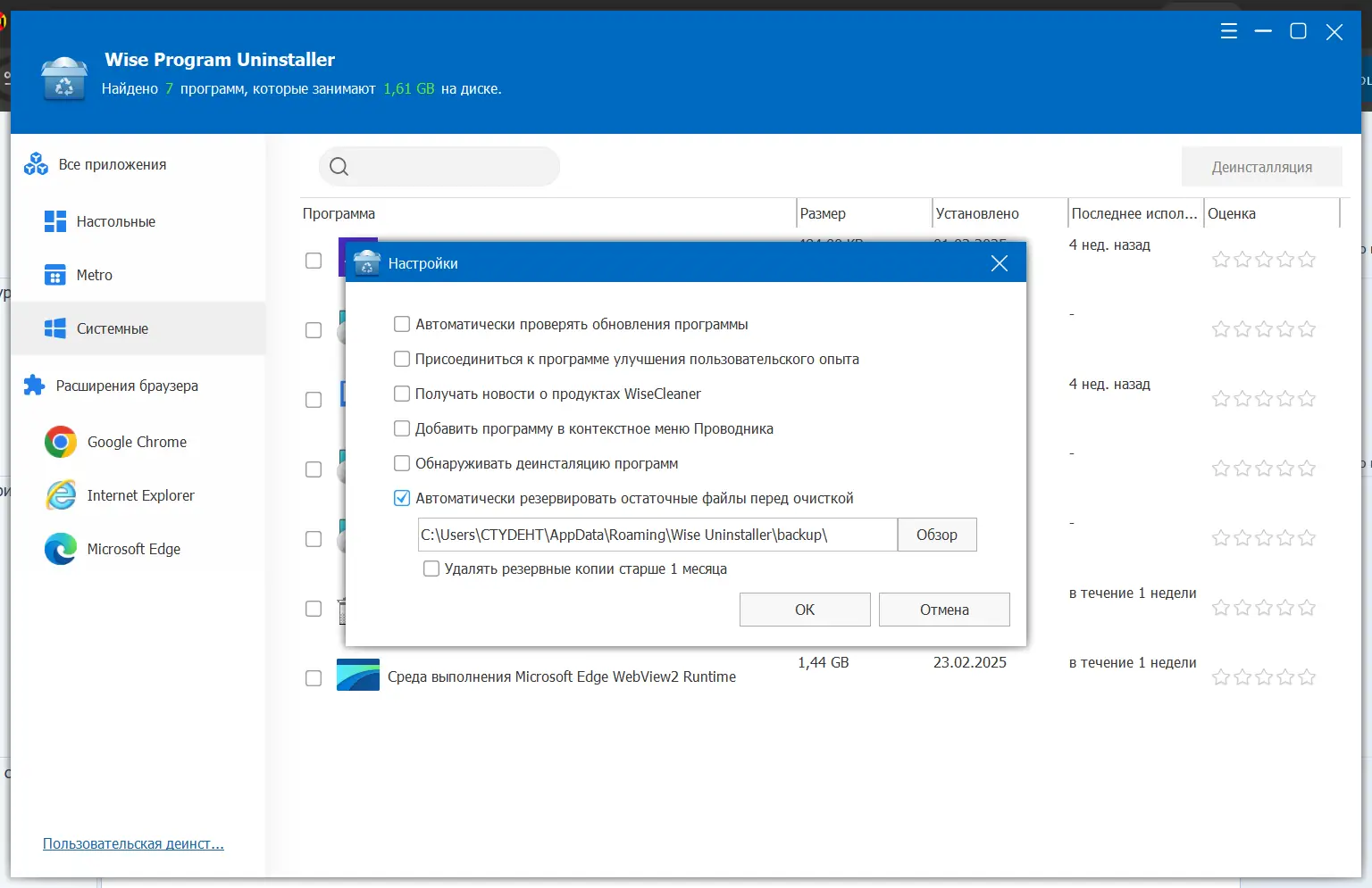 - Автоматическое обнаружение и удаление остаточных файлов и записей реестра.