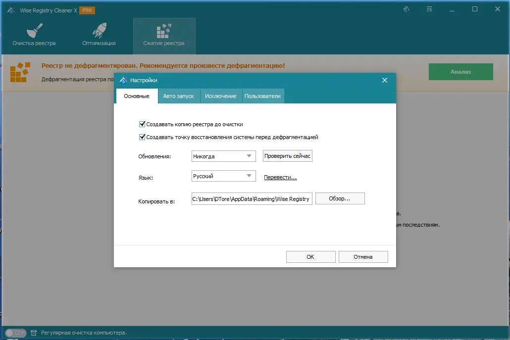 Работа с Wise Registry Cleaner