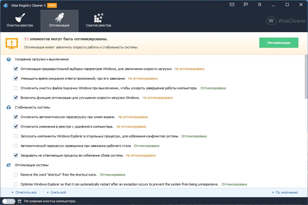 Описание Wise Registry Cleaner