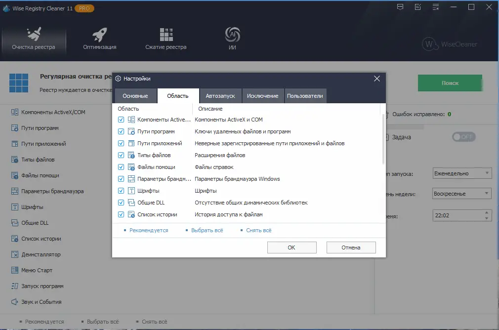 Wise Registry Cleaner — это мощная системная утилита для глубокой и безопасной очистки реестра Windows от устаревших, повреждённых и неработающих записей. Программа ускоряет работу операционной системы, повышает стабильность и предотвращает возможные сбои, связанные с фрагментацией и ошибками в реестре.