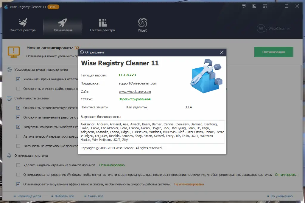 Wise Registry Cleaner — это инструмент для эффективной и безопасной очистки реестра Windows, способствующий ускорению работы системы и повышению её стабильности. Программа помогает устранить устаревшие, повреждённые и ненужные записи, а также оптимизировать параметры операционной системы для улучшения производительности.