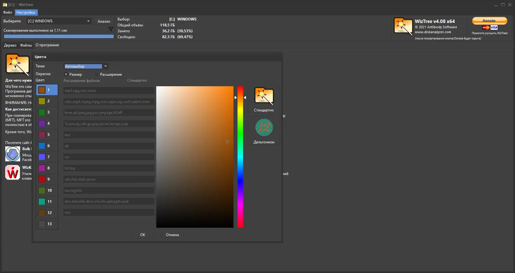 WizTree — это высокоскоростная утилита для анализа дискового пространства, позволяющая быстро выявить файлы и папки, занимающие наибольший объем на жестком диске. Благодаря прямому чтению файловой таблицы, программа сканирует накопители в разы быстрее аналогов, помогая эффективно решить задачу, как очистить диск от ненужных данных.