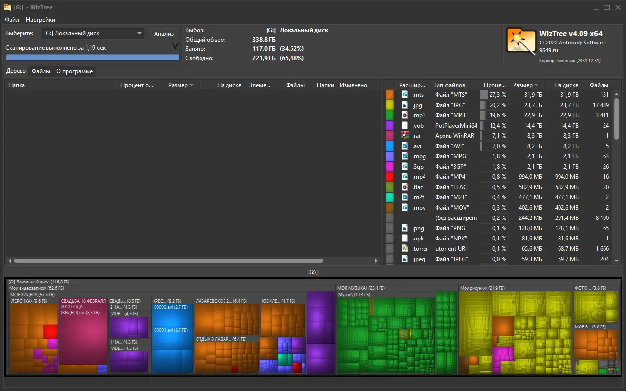 WizTree — это высокопроизводительная утилита для анализа дискового пространства, позволяющая быстро выявить файлы и папки, занимающие наибольший объём на жёстком диске. Программа работает напрямую с файловой таблицей NTFS, что обеспечивает мгновенное сканирование даже самых объёмных накопителей. Благодаря интуитивному интерфейсу и визуализации данных в виде treemap, пользователь легко определяет источники переполнения диска и принимает решение об их очистке.