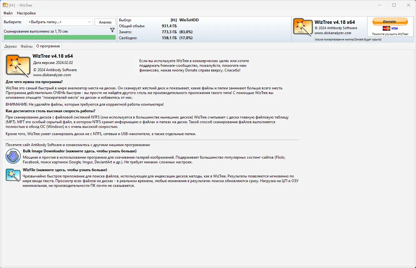 WizTree сочетает в себе высокую производительность, простоту интерфейса и функциональную гибкость. Благодаря прямому чтению MFT, она значительно опережает по скорости другие аналогичные инструменты. При этом программа остаётся легковесной и не требует установки. Однако, как и любой софт, она имеет свои ограничения.