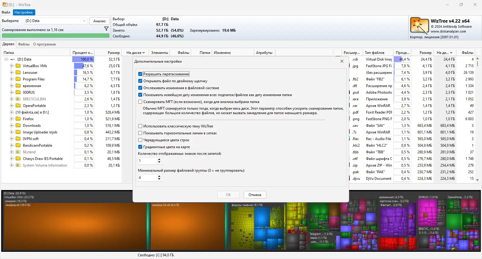 WizTree сочетает в себе высокую скорость, простоту интерфейса и расширенные возможности анализа. Программа демонстрирует отличную производительность и не требует установки, что делает её удобной для использования на разных компьютерах. Однако, как и любое ПО, она имеет свои ограничения.