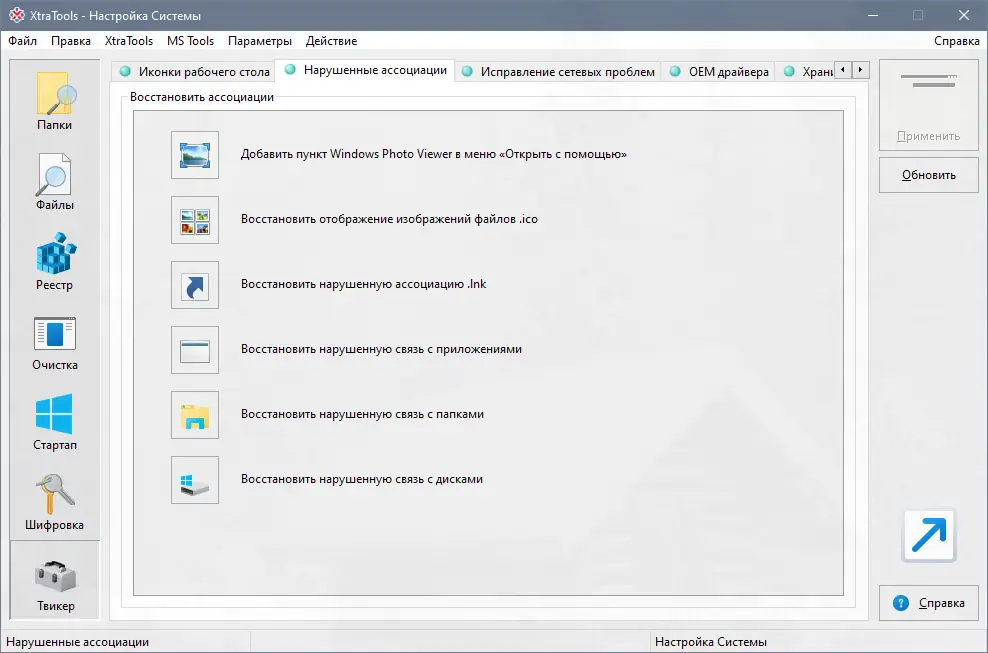 - Функция XtraTools: Scan Registry сканирует и исправляет ошибки в реестре, удаляя неверные ссылки и записи от деинсталлированных приложений, что положительно сказывается на скорости запуска системы.