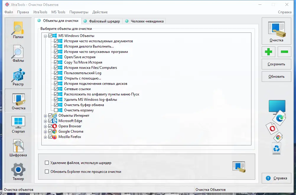 - XtraTools: Xtra Start обеспечивает быстрый запуск процессов очистки, включая сканирование реестра, файлов и временных директорий для устранения накопленного мусора.