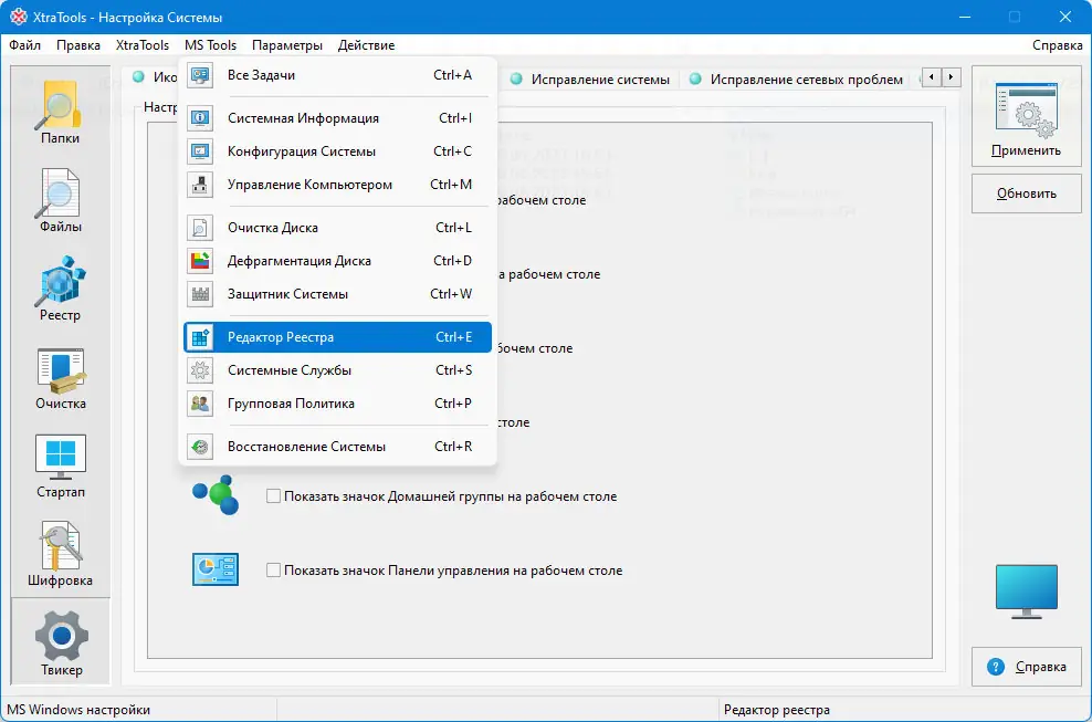 - Настройка скрытых параметров Windows через Tweak PC, где доступны дополнительные опции для улучшения безопасности и пользовательского опыта.