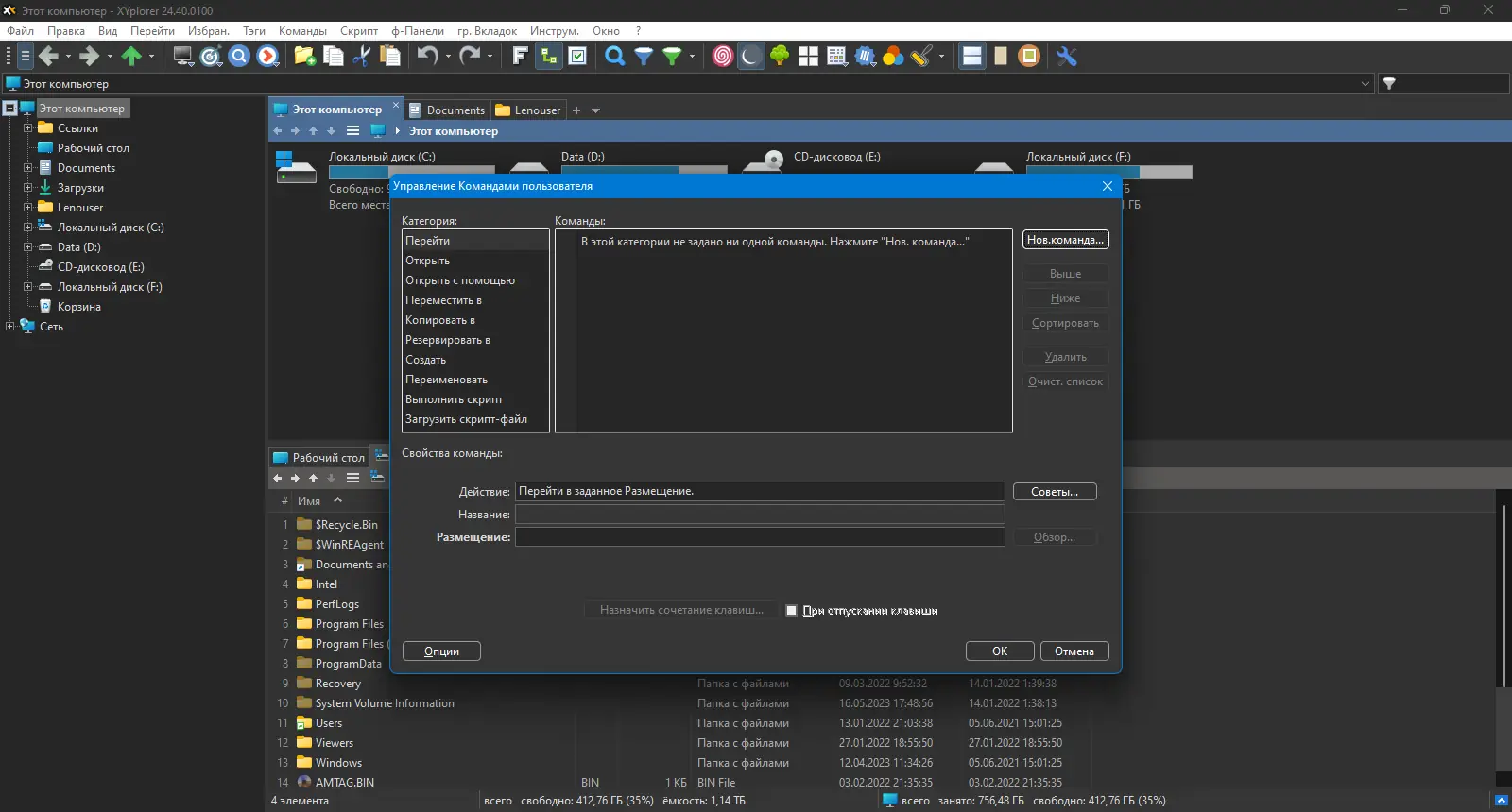Использование XYplorer интуитивно понятно благодаря продуманной структуре интерфейса. После запуска пользователь видит панель навигации слева, область с содержимым папки справа и строку адреса в верхней части. Открытие новых вкладок осуществляется через контекстное меню или горячие клавиши, что ускоряет доступ к нужным директориям. Все действия, такие как копирование, перемещение, переименование или удаление файлов, выполняются стандартным образом, но с дополнительными опциями — например, можно настроить подтверждение операций или включить отмену действий. Поиск файлов реализован через строку быстрого поиска, где можно указывать маски, расширения и диапазоны дат. Также доступна функция тегирования файлов, что упрощает их последующую сортировку и поиск. Пользователь может создавать закладки на часто используемые папки, настраивать горячие клавиши и сохранять сессии для быстрого восстановления рабочего пространства.