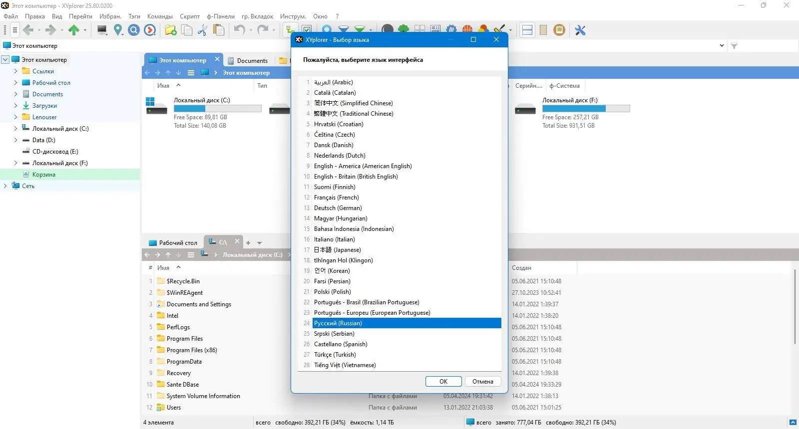 Работа с XYplorer интуитивно понятна даже новичкам. После запуска программы пользователь видит двойную панель с деревом каталогов и списком файлов, схожую с интерфейсом проводника. Для открытия новой вкладки достаточно нажать соответствующую кнопку или использовать сочетание клавиш, после чего можно перейти в нужную директорию. Настройка интерфейса осуществляется через меню, где можно изменить внешний вид, поведение панелей, шрифты и цветовые схемы. Дополнительно доступна настройка действий по умолчанию, поведения при перетаскивании файлов и интеграции с другими приложениями.
