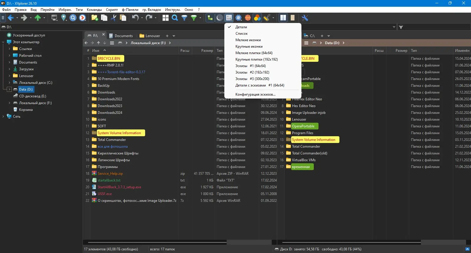 XYplorer демонстрирует высокую производительность и стабильность даже при работе с большим количеством файлов и вложенных папок. Программа поддерживает множество форматов и предлагает продвинутые инструменты для анализа дискового пространства, что особенно полезно при оптимизации хранения данных. В то же время, новичкам может потребоваться время на освоение всех возможностей, так как функционал обширен и не всегда интуитивно понятен с первого взгляда.