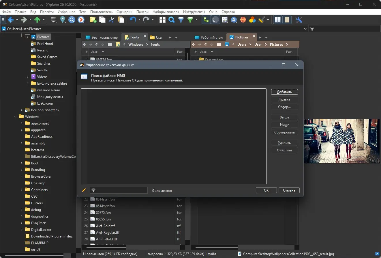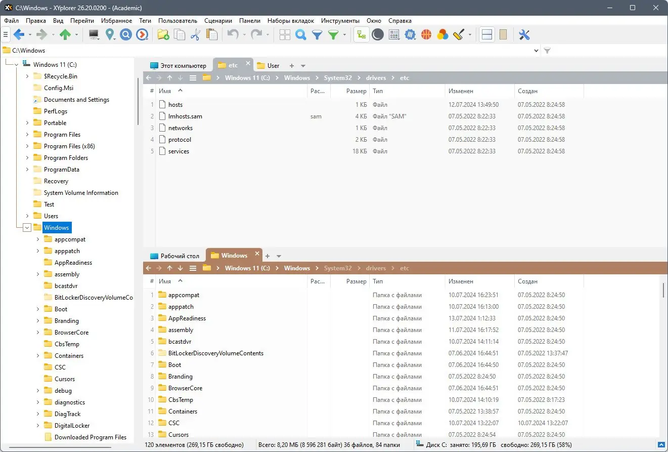 XYplorer — это альтернатива стандартному Проводнику Windows, ориентированная на пользователей, которым важна скорость, удобство и расширенный функционал. Программа сочетает простой и понятный интерфейс с продвинутыми возможностями, характерными для профессиональных системных утилит. Благодаря поддержке мультивкладок, пользователь может одновременно работать с несколькими директориями, не переключаясь между окнами. Интерфейс легко адаптируется под индивидуальные предпочтения: можно настроить панель инструментов, изменить цветовую схему, задать горячие клавиши и многое другое. Программа поддерживает просмотр файлов, включая изображения, аудио и видео, без необходимости запуска сторонних приложений.