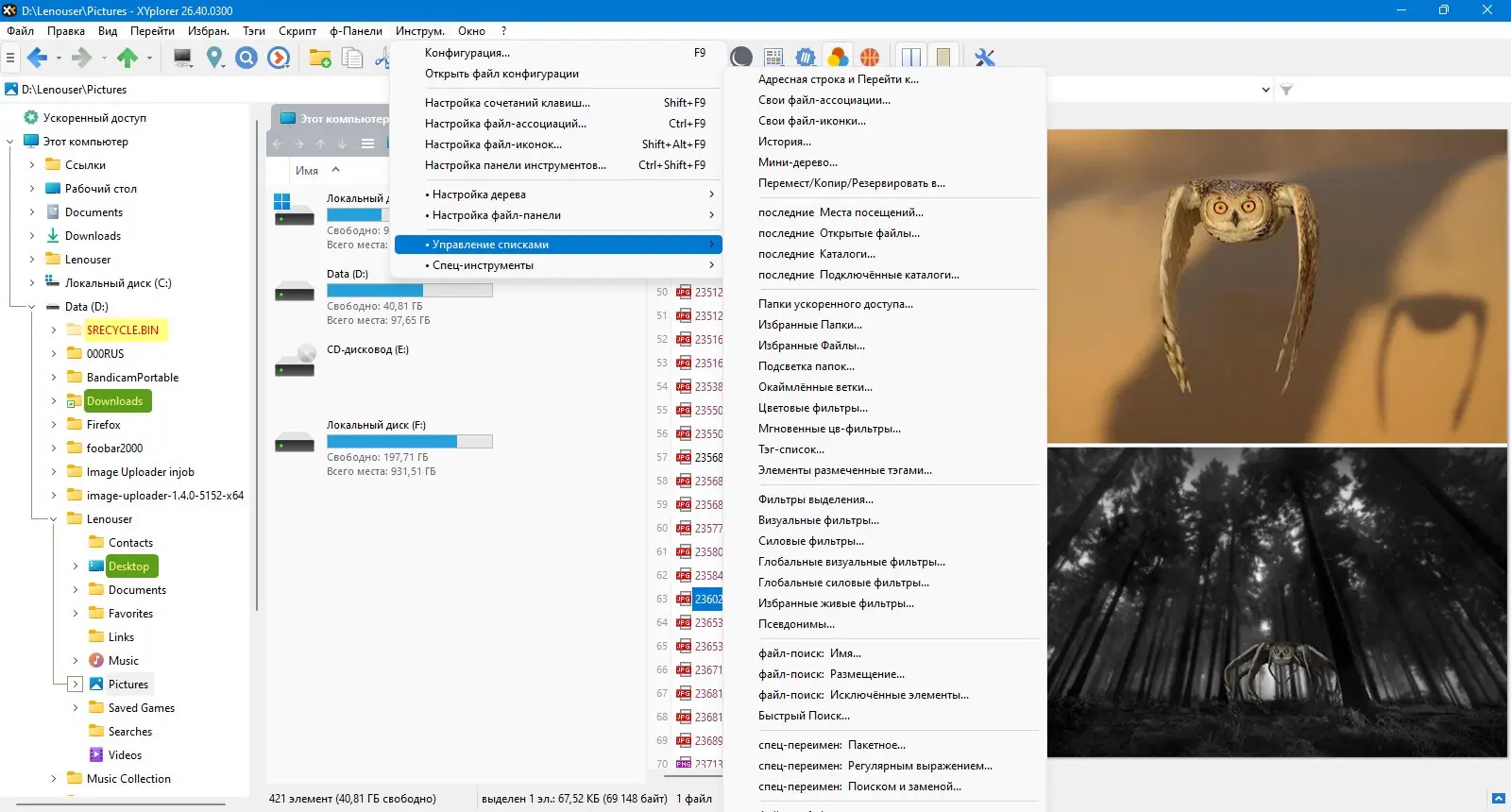 Работа с XYplorer