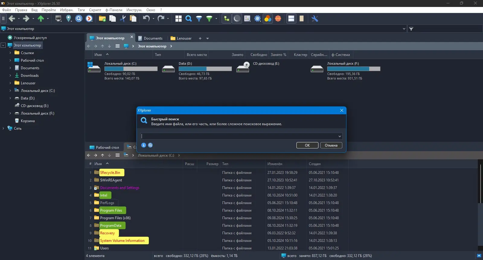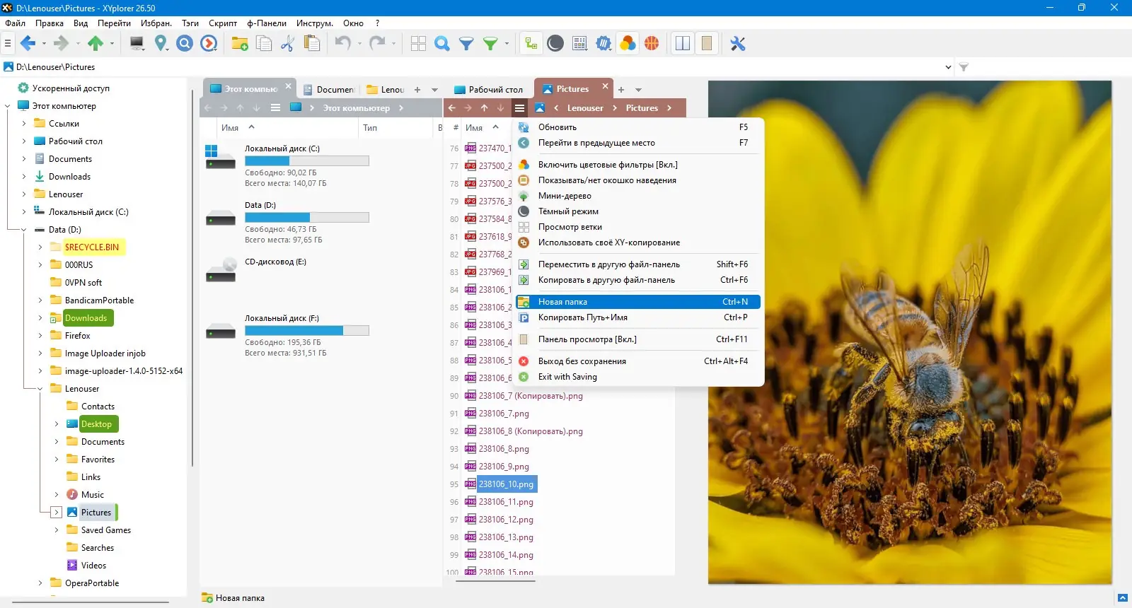 Работа с XYplorer